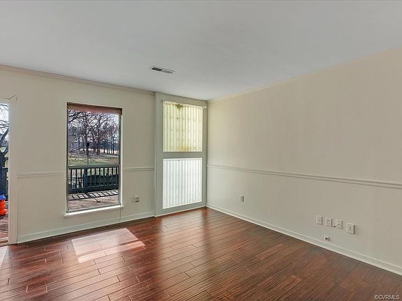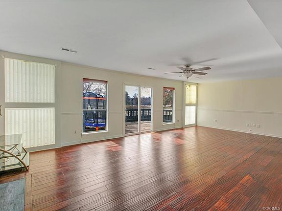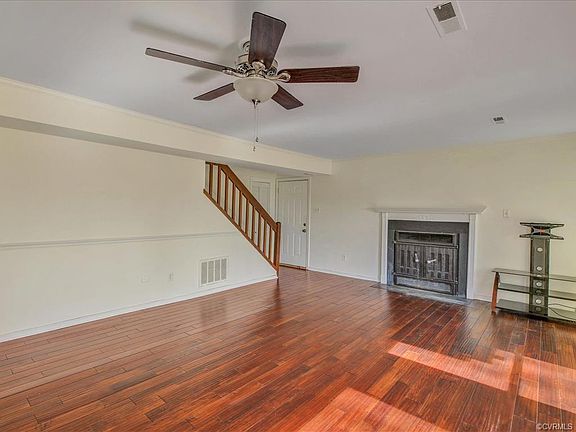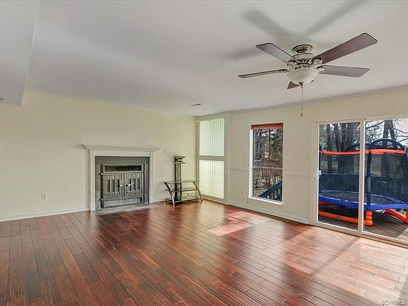 TWO STORY CONTEMPORARY WITH BEAUTIFUL TRANQUIL SETTING! This Home Sits on Private Cul De Sac Lot with Views of Providence Golf Course from Secluded Deck and Balconies. Upgrades Such as Wide Plank Hardwood Floor, New Plush Carpet and Fresh Paint Make this House Move In Ready. First Floor Offers Open Floor Plan Featuring Spacious Great Room with Wood Burning Fireplace, Crown Molding and Chair Rail. Functional Kitchen has Painted Gray Cabinets, Smooth Top Cooking and Refrigerator and Flows into the Dining Space. Convenient First Floor Bedroom Boasts Carpet, Light/Fan, Closet & Adjacent Full Bath with Vanity, Walk In Shower & Modern Light Fixture. Second Floor Provides Two Huge Bedrooms w/Quaint Balconies! Master Bedroom Includes Cedar Closet with Built In Shelving, Vaulted Ceiling and Master Bath with Vanity, Tub/Shower, Linen Closet and Skylight Offering Tons of Natural Light. Second Upstairs Bedroom Also Shines with Vaulted Ceiling & Skylight. Detached Shed Gives Extra Storage Space. Home is in Desired Chesterfield County and is Close to Chippenham, Powhite Parkway, 95, Dining, Shopping, Entertainment and More!