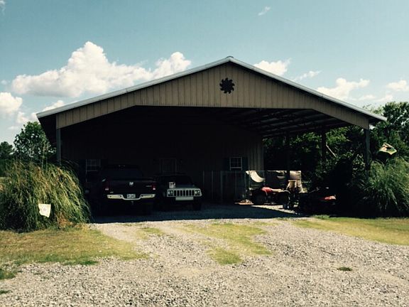 Barndominium, 2 bedrooms, 2 bath downstairs, 1 bedroom up stairs with 2 more rooms that could also be used for bedrooms, a 12X40 back porch overlooking a 4 ac. Lake