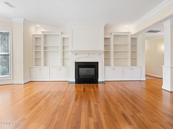 Welcome to luxury living! Rare opportunity to own a second story, creekside condominium unit in prestigious Harrods Creek Overlook. This elegantly designed condominium is like-new and loaded with custom and architectural features. Located on the second floor with 10'' ceilings and scenic views overlooking Harrod's Creek. Enter through the marble foyer and into a light-filled open living area with hardwood floors, built-in bookshelves and gas fireplace. The large gourmet kitchen features custom cherry cabinets, exquisite granite, wet bar, wine cooler and top of the line appliances. A speaker system has been installed throughout the entire unit. The hallway leads to an office with beautiful custom built-ins, a guest bedroom and full bath with walk-in shower. French double doors lead to the primary suite with sitting area and more windows with picturesque views. Large walk-in closet is custom built. The master bathroom is light-filled and spacious. It features double vanities, a large jetted tub and walk-in shower. The covered, ceramic tile patio is one of the largest in the complex and provides ultimate park-like views and privacy. Private elevator leads directly to the unit and to a secure, heated garage with two large parking spaces and storage cabinetry, combining safety and security with luxury and convenience. Green space located across the building on US-42 will remain green as the HOA has purchased the land; no future development allowed. Roofs on all 4 buildings were recently replaced. So much to enjoy in this almost 3000 square feet of luxury, secure living. Well-priced and the best value in Louisville area luxury condo living, call for your private tour today!