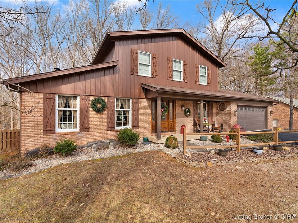 Wooded privacy surrounds this nearly 3,300 SF 3 BR 4 bath home with 2 large decks & covered porch.  Award winning schools.  Before entering Greenville this home is beautifully located on the last street in serene, quiet area.  There's room for boat/RV/camper storage and additional parking in large paved area behind the gorgeous home!  Only quality materials used from PC Building in updates.  This was a Courier Journal State of Art Blue Print Home.  Low utilities!  LR has new carpet, hardwood in entry & hall.  Beam ceilings in family room.  Spacious kitchen.  2 dining areas.  Lower level w/large closets & door to walk out.  Original owners combined Main BR and BR #2 to create massive bedroom.  Large patios!  New Furnace/air in 2023.  Shingled by Paul Lilly roof & Marvin windows.
