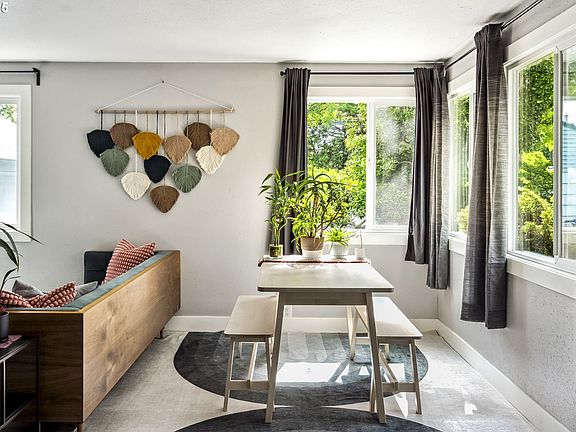 Tucked away on a quiet, close-knit street, this bright gem is the perfect place to take root. The open floor plan and expansive corner windows create a bright, airy vibe that lives larger than its square footage.The updated kitchen and bathroom feature fresh tile and modern countertops, while recent upgrades like a brand-new HVAC system and newer roof mean you can move in worry-free. But the real showstopper? A massive garage and oversized lot — ideal for a creative studio, dream workshop, or future ADU. There's room to grow, build, and thrive.Step outside and you’ll find yourself surrounded by the gentle charm of nature — think ducklings in the spring and baby bunnies passing through. Quick jaunt to local favorites like Juniors Coffee and nearby breweries and food carts, or hop over to Rocky Butte for a little hike and panoramic views. Commuting is a breeze with easy access to transit, freeways, and the airport. [Home Energy Score = 5. HES Report at https://rpt.greenbuildingregistry.com/hes/OR10238794]