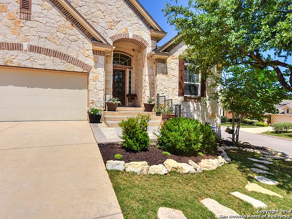 Mostly tile & hardwood floors with very open/functional floor plan. Huge island kitchen with granite/stainless appliances & gas cooking. Office with French doors & closet. Teen retreat flanked with two bedrooms & add'l guest bedroom with en-suite bath. Upstairs gameroom with full bath & closet. Three-car garage, water softener, outdoor kitchen with built-in fridge & grill, privacy-fenced yard with firepit. Gated community with easy on/off to I-10. Boerne schools!
