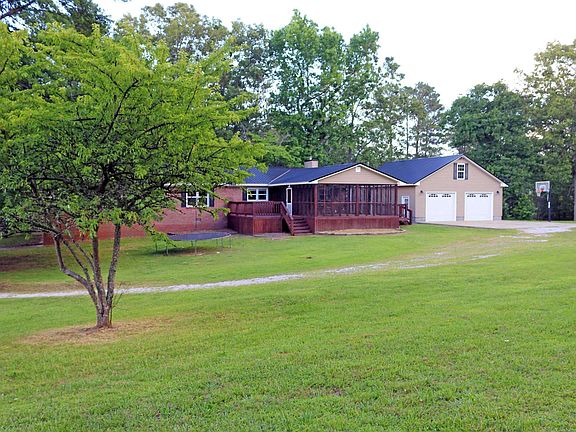 Come home to this quiet and peaceful 4 Bedroom, 2 Bath home located on 4+- acres in Hokes Bluff. You will not believe all the extras this home has to offer including a 80'X45' barn with concrete flooring and a workshop, a 60'X40' pole barn, another smaller metal shed perfect for lawn equipment. There is also an adorable 8'X8' playhouse surrounded with decking that is such a fun place for kids. This home was completely remodeled in 2012 including new windows and new hardwood flooring. Roof was replaced in 2019. Just recently installed new carpet and painted throughout. Large mud room with open cubbies and coat hooks. You have an extra large 2 car garage on the main level and a garage on ithe basement level as well. Schedule your appointment to see this home before it is gone!