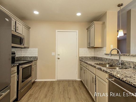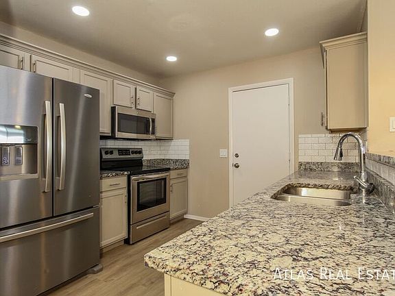 This 3-bedroom, 2-bath home is move-in ready and filled with modern touches. Step inside to find fresh flooring, an open living space, and plenty of natural light that creates an inviting atmosphere. The upgraded kitchen is a showstopper, featuring granite countertops, subway tile backsplash, stainless steel appliances, and sleek cabinetryperfect for both everyday meals and entertaining.