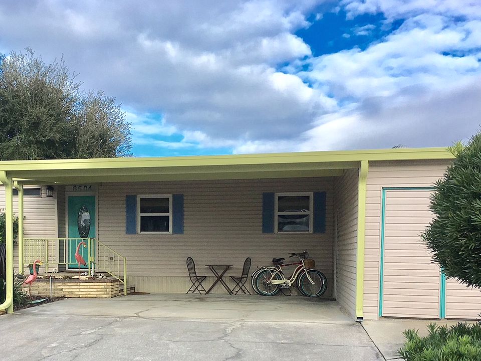 If you're searching for a quaint beach cottage, on a land-owned lot, and overlooking a quiet pond and golf course in 55+ community, then this home is for you! Completely renovated with two master bedrooms with ensuite baths and walk in closets. There is also a bonus room that is perfect for a den, craft room, or even a Bunkie for the grandkids! Upgrades include a new kitchen with butcher block countertops, marble backsplash, large island with storage galore and new stainless steel appliances. The kitchen flows into an open concept dining room and living area with new laminate flooring, recessed lighting, new ceiling, doors, and trim and paint throughout. The charming bathrooms have new tile floors, shiplap walls, 70" butcher block countertop with a 36" porcelain vessel sink. The shiplap and new laminate flooring continue through to the two master bedrooms. The home features water views from three rooms, and has a combination covered and open screened lanai. Also a large shed with Culligan water softener and filtration system, and room for golf cart parking with extra storage above. Double side-by-side carport and an extended driveway with parking for additional vehicles. Conveniently located to Ellenton Premium Outlet Mall, Bradenton, Sarasota, Anna Maria Island and Saint Petersburg beaches via I-75 and I-275. This home is move in ready, and located in Imperial Lakes - a 55+ gated community that is very active with amenities including 2 heated pools, spa, tennis courts, pickle ball, bocce ball, horseshoes, shuffleboard, clubhouse with full kitchen, pool room, library, stage and dance floor, and managers office.