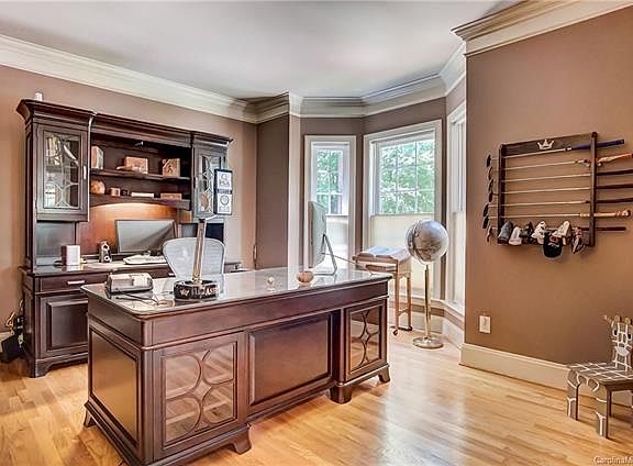 Gorgeous hardwoods & heavy crown molding greet you as you enter this pristine, all-brick home. Open floorplan with large Great Room with vaulted ceilings & elegant curved staircase. A beautiful, spacious kitchen complete with butler's pantry, island & granite counters overlooks your Great Room. First floor feat. study, laundry & Master Suite. Large master with two custom closets, renovated bath with soaker tub, frameless shower with body jets & dual vanities. French doors from the Master guide you to your outdoor sanctuary. 3 bedrooms & 2 full baths upstairs with spacious Bonus Room & surround-sound in Master, Great Room, Bonus & deck. Enjoy a low-maintenance & efficient pool & hot tub with cascading waterfall that costs less than $800 annually to maintain, nestled in the privacy of your own backyard. A putting green, outdoor living spaces & private wooded lot that backs up to the community's greenspace and walking trails complete your outdoor oasis.