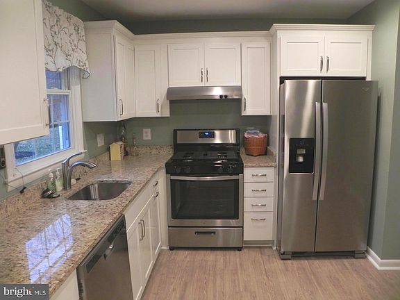 Welcome Home! Custom kitchen with granite counters, stainless appliances & recessed lighting . Abundant white cabinets with self-close doors & drawers. Additional features include beautiful hardwood floors on the main level, finished lower level with wood burning fireplace & possible 4th bedroom. Second refrigerator in lower level. Warm gas heat & cooking. All appliances included. Large exterior storage shed. Home interior is currently being painted throughout. Private and level rear yard great for entertaining, children playing or just relaxing. Multi car driveway provides plenty of parking. Convenient to shopping & schools.