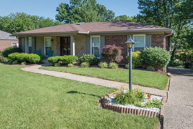 Larger than it appears! walk out style ranch (only lower level exterior exit is through garage). offers 4 nice size bedrooms (one located in basement has egress size window) and 3 full baths! First floor family room has beautiful stone fireplace and vaulted ceiling. Eat in kitchen offers plenty of cabinetry and is open to the family room. Formal Dining room . Formal living room. The master bedroom offers private master bath.The basement has additional family room , and full bath! Nice deck overlooks beautiful shaded fenced yard. Covered rear patio.