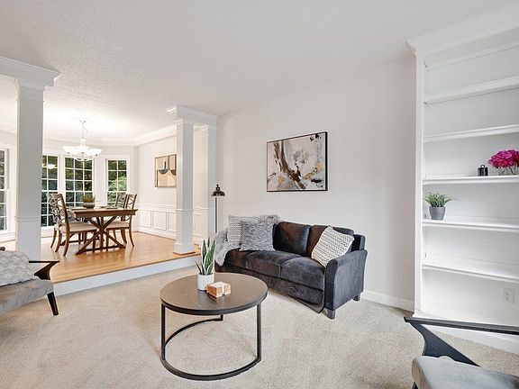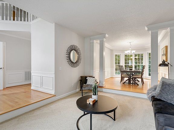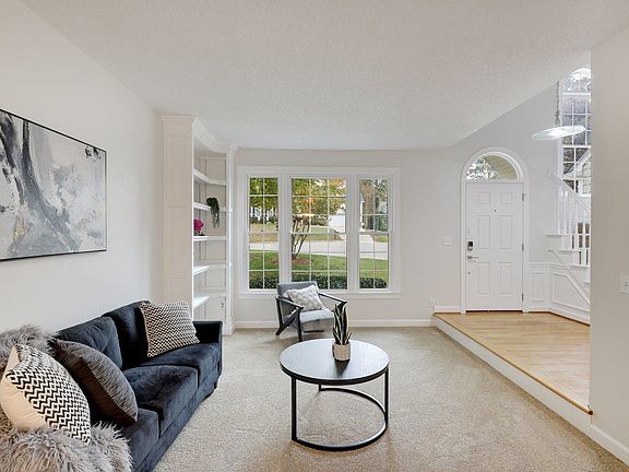 Beautiful 4 BR home in outstanding North Raleigh location with quick access to 540. New paint and carpet throughout. Main floor holds large flex space open to formal dining room great for entertaining. Updated kitchen with stainless steel appliances, breakfast bar and eatin area with updated lighting with access to large deck overlooing spacious backyard with firepit great to enjoy cool southern evenings.. Large family room with gas fireplace. Upstairs features large primary with vaulted ceiling and ensuite with dual vanity, walkin shower & garden tub. 3 addtional BR and large hall bath.