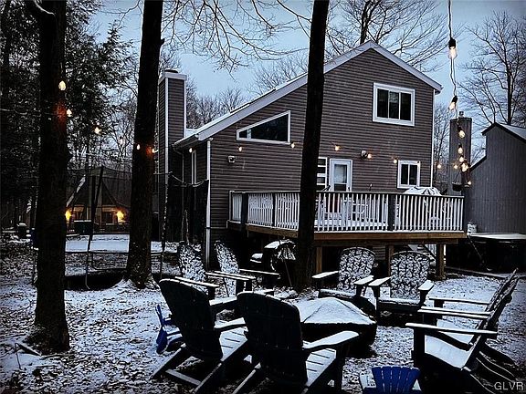Totally renovated Contemporary home currently used as an active Airbnb. This home offers 5 Bedrooms, 2 bathrooms, Large Living Room with cathedral ceiling, Fireplace and Laminate Flooring. Modern Kitchen has granite countertops, stainless steel appliances, updated bathrooms, Large family room, Huge rear deck with hot tub. Additional features include, New Roof with 30 year warranty, New Landscaping (maintenance free), New electric panel, New Dishwasher, New window AC units. Immaculate condition. Sold Fully Furnished. All this and so much more in amenity filled Pocono Country Place. Schedule your showing today.