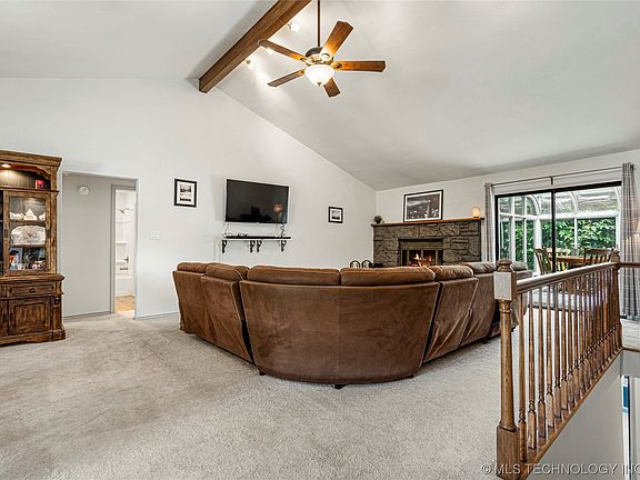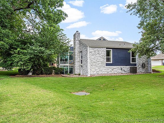 This renovated four-bedroom split-level home is located in South Country Estates, a desirable area near 106th & Memorial in Bixby North schools. Situated across from Quail Creek Park and in close proximity to two public tennis courts, this property offers a convenient and family-friendly location. The home boasts numerous features and upgrades, including new windows, roof, water heater, and HVAC. On the first level, you'll find 2,210 sqft of renovated living space. This level includes a primary suite, large walk-in closet with soft-close drawers & built-ins, and an ensuite featuring a jacuzzi tub, double sink shadowstone granite vanity, and a spacious walk-in tiled shower. Additionally, there are two more bedrooms, another full bath, a large renovated kitchen with shaker-style cabinetry and a 9-foot, eat-in granite island, two dining spaces, and living room. The kitchen is beautifully appointed with glass backsplash, black matte hardware, stainless steel appliances, and a five-burner in-island downdraft cooktop. The living room offers vaulted ceilings, wood burning fireplace, and a glass-roofed sunroom (with heat/air) that overlooks the garden. The walk-out finished basement adds an extra 1,045 sqft of living space. It features a fourth oversized bedroom, a third full bath, a second living space with a second wood-burning fireplace, and an unfinished basement area of 1,315 sqft. Directly off the second living is another sunroom with heat/air and accessibility to the exterior. Sitting on a corner lot that spans over 1/3 an acre, the backyard resembles a park-like setting and includes a private sunken courtyard, which is home to a family of turtles. The side-entry garage comes with a temperature-regulated bonus space of 90 sqft. The current owners have gone above and beyond in renovating and preparing this home, ensuring that it is move-in ready for its next owners. The attention to detail and thoughtful updates throughout make this property truly special.