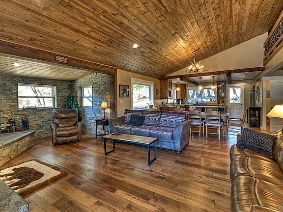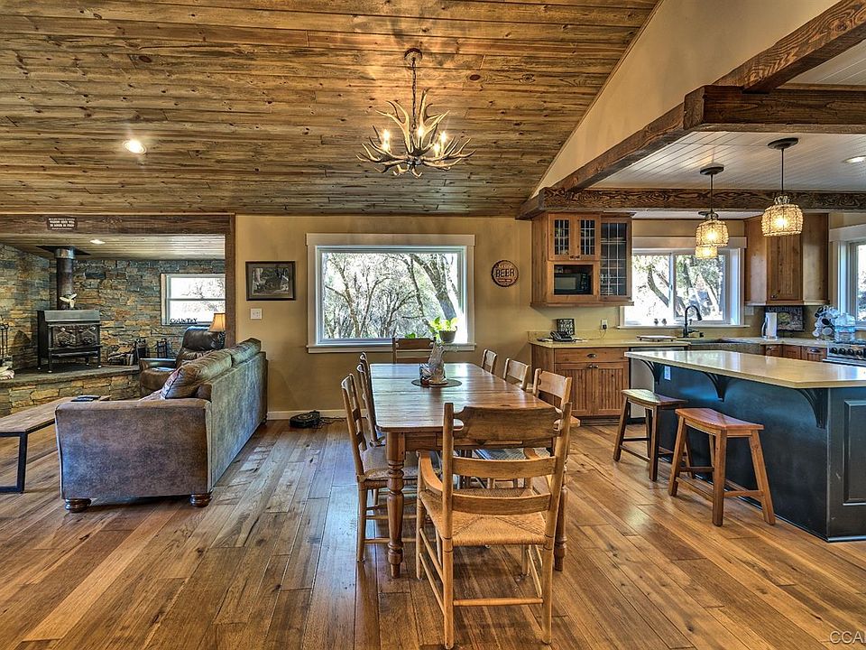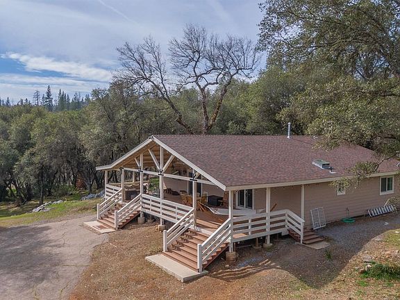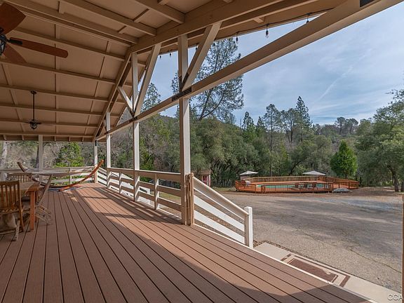 Spectacular home on 40 private acres zoned Unclassified. This home features modern Ranch style home with all the updates: Custom cabinets, Quarts counter-tops, Copper sinks, large pool with deck, fenced for animals, 6 stall horse barn, shop, utility shed, 2 wells-one well that pumps 35 GPM, seasonal pond and the creek that runs through the corner of the property. This one of a kind property features lovely valley setting around the home with irrigation on about an acre, fantastic hill top pad with plenty of trees and sun. Entertain on your huge front porch or just relax and watch the turkey and dear play in natures parricide. Paved road with private gated entrance close to the town of Mountain Ranch. Includes full RV hookups.