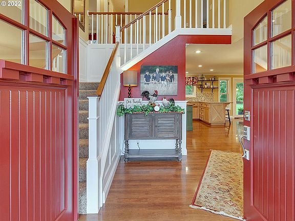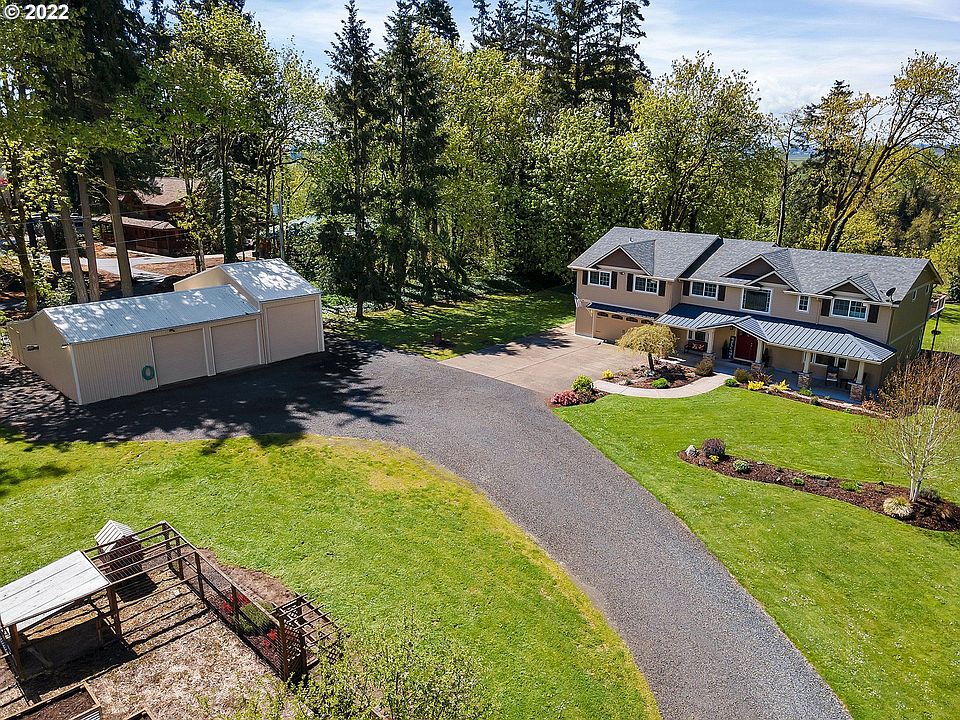Gorgeous riverfront farmhouse nestled on small acreage boasting all usable land, outbuilding & room for everyone! Open great-room concept, gourmet kitchen w/custom Island, mud room, spacious bedrooms, oversize master w/built-in vanity & storage, beautiful bathrooms & incredible bonus room! Full length covered front porch out front & dual level deck out back with lower level for all-weather enjoyment. Private two-story dock on the Willamette River. A sanctuary that's absolutely incredible!