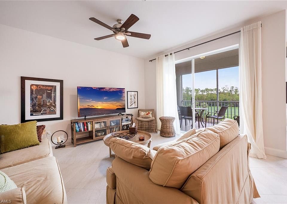 Fabulous top floor end condo , nobody above you and only one neighboring condo giving you a majestic and expansive view of the eleventh hole. Walking distance to the club and amenities. This beautiful open concept Brookside model is completely furnished and ready to move into. Tile in living areas. Granite countertops and an upgraded kitchen. Just move in and enjoy all Naples Heritage has to offer including golf, clubhouse with dining , resort style pool with dining, fitness center with classes, tennis complex, pickleball complex...Naples Heritage has it all ! All of this and so close to Fifth Avenue and the Naples beaches ! You've earned that Naples lifestyle come and enjoy it it one of Naples premier bundled communities where neighbors become lifelong friends.