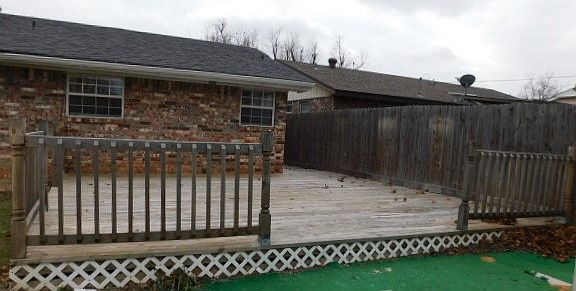 Buyer back out through no fault of seller. MAKE us offer, inspection completed and ready to sell. Cute home with open concept. two year old H/AC, Hot-water Heater, roof, flooring, windows, garage opener, doors, kitchen updates, and appliances. Back yard has a storage building and open deck patio. Long driveway leads up to a side entrance double car garage. Great location for easy access to the Turnpike, the airport, or the City of Mustang. Located in Mustang Schools. Tile through out. Carpet only in bedrooms.
