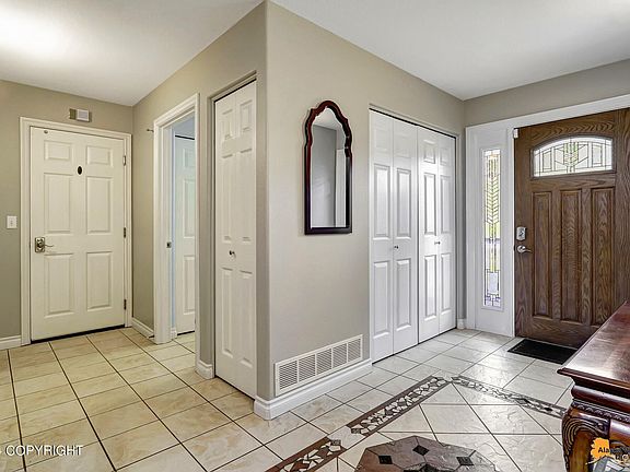 Stunning Well-Kept Home in Desirable Skyhills Estates w/ Fenced Yard -Close to Trails & Kincaid Park! Kitchen an Entertainer's Delight w/Large Gathering Island, 42'' Cabinets, Granite Counters, SS Appliances, Huge Dining Area w/Door to Front Upper Deck & Easy Year Round Grill Access! Vaulted Liv Room Ceiling w/Picture Windows, Gas See-Through FP Between Kit & Liv. Upper Level Primary Suite.4*+ Energy Rated Updated 2023 - Carpet - Interior & Exterior Paint - Shed - All Toilets - In-Ground Sprinkler System (Front Yard) - Doors - Front Door, Back Deck Door, 2 Upper Deck Doors - Front Porch, Kitchen Deck, & Master Bedroom Deck Kitchen Deck & Back Deck w/Gas Stub Out for Grill Yard Wired for Electric Dog Fence Newer Cement Walkway to Front Door 2023 Seal coated Driveway Upper Level Details: Gourmet Kitchen- Pantry; All Stainless Steel Appliances (Gas 4-Burner Frigidaire Electrolux Range, Frigidaire Electrolux Built-In Microwave, Kitchen Aid Dishwasher, Samsung Refrigerator); Granite Counters; 42" Maple Cabinets w/Glass Displays; Large Island w/Seating; Open to Dining Area Vaulted Living Room w/Picture Windows, Gas FP (see-through to Kitchen) Full Bathroom w/Dual Sinks, Shower/Bath Combo, Laminate Counters, Tiled Flooring, access from hallway OR Bedroom #2 Primary Suite w/Upper Deck Seating Area; Large Ensuite w/Private Toilet Room, Jetted Tub, Dual Sinks, Walk-In Tiled Shower, Maple Cabinets, Tiled Flooring, Storage Closet, Built-In Wall Safe Bedroom #2- Backyard Views, Direct Hallway Bathroom Access Main Level Details: Tiled Entry- Spacious! Laundry Room w/Mud Sink, Storage Cabinets, Electric Connections Full Bathroom Bedroom #3 (w/Door to Full Bathroom) Den Large Rec Room w/Wet Bar; Sliding Doors to Back Deck & Fenced Yard, Can Lighting, New Gas Free Standing Fireplace 783 SF 3-Car Garage w/Workshop or Storage Area, Man door, Heated