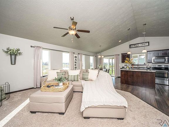 A beautiful, like new, 2 bedroom/2 bath home on the west edge of Sioux Falls. Main level is open and airy with vaulted ceilings and slider to covered patio with a view of the spacious backyard, firepit and pond - canoeing and ice skating just out the back door. Kitchen features island and pantry. Master bedroom has 3/4 tile bath and walk-in closet. 3-car garage is oversized. Lower level is ready to finish to your specifications.