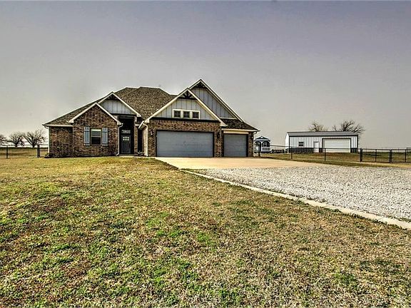 Looking for that Immaculate house just outside the metro on 2 acres? Well, wait until you see this one! LOCATED IN THE HIGHLY DESIRED CASHION SCHOOL DISTRICT, This TUCKED AWAY PRIVATE one level beauty offers something for everyone. An open concept kitchen faces the living and fireplace, and is LOADED with EXTRAS... XL BONUS room, stainless appliances, farm style sink, large island, Built-ins everywhere, Tray ceilings and nice BIG master closet. Natural light shows off the hand scraped hardwood floors and WHAT a view of the wheatfield and WILDLIFE just behind the property. Tons storage TOO! Reverse Osmosis filtration system and softener new 2022. 30' x 40' drive through shop. NEW 2nd building is wired, carpeted, and ready to be utilized. Chicken coop, raised garden bed, anchored playset and sandbox ALL STAY! Storm shelter in garage, security system, custom blinds and more! See supplements attached for a full list of amenities or call for more info and showings! A pleasure to show!
