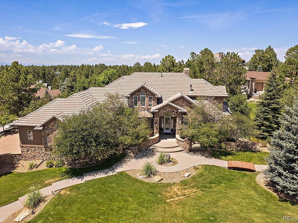 Timbers extraordinary residence at this price per sq ft - this is rare find @ only $339 per sq ft above grade! Compare and you will confirm! Don't miss the 4 car garage and private bonus room, and loft in garage. As you step inside, a welcoming foyer, soaring two stories high, extends its gracious embrace. The journey through this home begins with a stunning home office, hinting at the delights of the open concept floor plan that lies ahead. To the left, a grand formal dining room awaits, boasting a beautifully coffered ceiling that elevates every dining experience. Beyond, the grand family room captures your heart with its vaulted ceiling, skylights illuminating the space, and majestic floor-to-ceiling windows that frame enchanting vistas. This flows seamlessly into a gourmet kitchen, with a large island, charming breakfast nook, and breathtaking panoramas that invite culinary inspiration. Open the French doors to reveal an expansive deck, where you can bask in the splendor of a private backyard adorned with a beautiful water feature—a sanctuary of peace and serenity. On the main floor, a stunning master suite awaits, spacious ensuite bathroom and not one, but two walk-in closets. Ascend the stairs to find three more bedrooms, each with walk-in closets, private bathrooms, and views of the Rocky Mountains. Descend to the walkout finished basement, with extraordinary wet bar, complete with a wine fridge, sink, and dishwasher, full refrigerator—a haven for hosting unforgettable gatherings. The adjacent family room gracefully opens to a covered patio and beautifully landscaped backyard. The basement also offers the versatility of an exercise room, which can easily transform into a fifth bedroom, accompanied by its own bathroom, and laundry (bonus 2nd full bath...so many future options for all this space). Throughout this home is plantation shutters, ceiling fans, exterior NEW JELLYFISH LIGHTENING. Truly one-of-a-kind home!