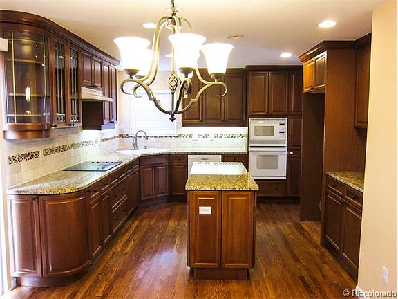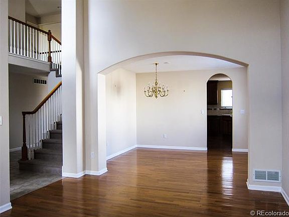 Exquisite 5 bed/4 bath home sits on a sunny corner lot with mature trees in a modern private community in the top-ranked Cherry Creek School District, steps from the Highline Canal and Cherry Creek Trail, with quick access to DTC and Denver. Bright, airy open-plan home features soaring vaulted ceilings & floor-to-ceiling windows throughout, perfect for comfortable, everyday living or grand-scale entertaining. A two-story foyer with cathedral windows showcases stylish stone and hardwoods that flow, on one side, into a main floor home office or bedroom adjacent to a ¾ bath, and on the other side, a formal dining room boasting large windows and a living room with a built-in window seat, vaulted ceiling and floor to ceiling windows, and the flexibility to be your new library, music room, or gathering spot for after-dinner drinks and conversation. Step into the gourmet eat-in kitchen, featuring granite-topped center island and countertops, custom cherry-wood cabinetry, and designer stainless steel appliances or, while dinner cooks, relax in front of the gas fireplace under vaulted ceilings and floor-to-ceiling windows, with built-ins and generous wall space to frame even the largest entertainment system. Easy access from the kitchen to the private patio and garden, perfect for a relaxing breakfast or summer grilling with friends and family, featuring a built-in gas connection for a grill or future outdoor kitchen, and electric retractable canopy. At the top of the foyer's grand staircase is the master suite, with a large picture window, walk-in closet, shower and soaking tub, custom double-sinks, cabinetry, mirrors, and private water closet. Down the hall are two spacious bedrooms and a large hall bath. Huge open-plan basement offers family & friends a large guest bath and bedroom hidden behind French doors. Custom in-ceiling & wall connections and acoustics designed for a home movie theatre! Add seating and popcorn, and still have room for a playroom, gym, or wet bar.