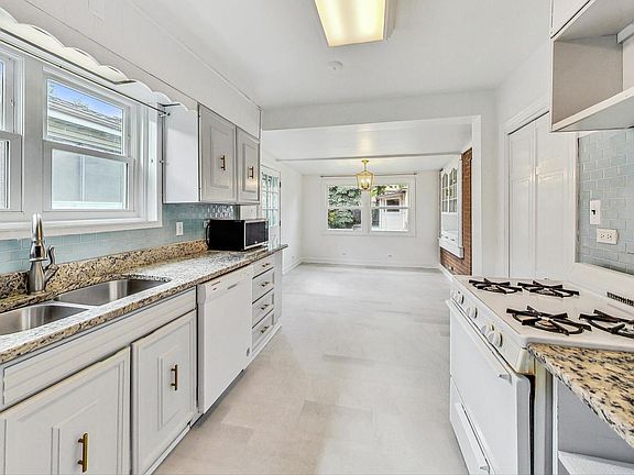 Welcome to this charming brick ranch home situated in this desirable Skokie neighborhood nearby Evanston! As you enter this delightful home, you'll find an inviting living and dining room offering an abundance of natural light from the newer double pane windows which you'll find throughout. There are two generous sized bedrooms and a full bathroom along with a convenient pull down ladder in the hallway for attic storage access. The updated, bright kitchen offers granite counters, wood cabinetry, new flooring and convenient side entry door. The spacious, open eat-in area is ready for all your gatherings and boasts a perfect yard view. The laundry and utility room with sink and new flooring provides extra storage space. The kitchen leads into the family room or possible 3rd bedroom with a sliding glass door to your backyard retreat. Step outside to enjoy this tranquil fenced yard with patio area. An ideal open space for relaxing, entertaining and gardening with new sidewalk to 2 1/2 car garage with over head storage and attached storage shed. Recent updates: New Central air system installed 2017, Furnace and Electric panel 2016, Chimney repointed and repaired 2016, Roof 2019, Sliding door and front door 2017, French drain with dry well in backyard 2016, Sewer connection from sidewalk to street replaced 2023. Fantastic location walk to Navajo and Shawnee Parks, nearby top rated schools, shopping, dining, minutes to I-94 expressway access and other community amenities. All ready for you to make this lovely home your own!