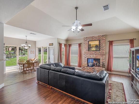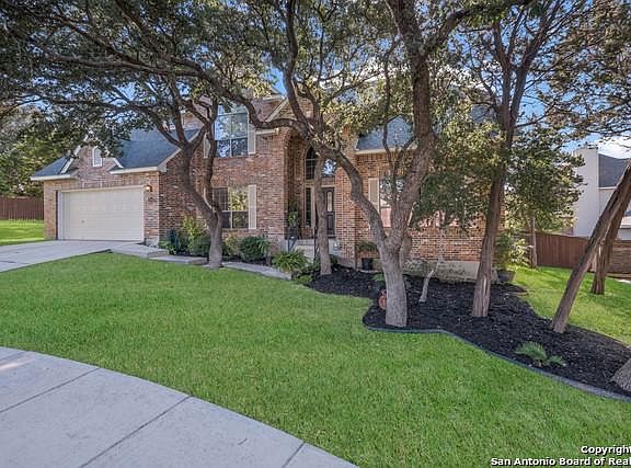 OUTSTANDING CUSTOM 4/3.5 JAPHET HOME ON HUGE TREE FILLED .31 ACRE CUL-DE-SAC LOT IN GATED SPRINGS OF SONOMA RANCH. FRESHLY PAINTED EXTERIOR AND EXCEPTIONAL LANDSCAPING AND NEWER FENCE ALL AROUND! ENTER INTO TWO STORY ENTRYWAY FLANKED WITH LIVINGROOM/STUDY, SPACIOUS DINING ROOM. OVERSIZED GRANITE ISLAND KITCHEN OVERLOOKS GRAND FAMILY ROOM FIREPLACE AND WITH NATURAL LIGHT FROM THE SPRAWLING BACKYARD. NO CAFPET IN ONLY WARM WOOD FLOORS AND TILED WET AREAS. BEAUTIFULLY PROPORTIONED ROOMS CONTAIN LUXURIOUS UPGRADES. JENNAIR BUILT-INS, ARCHED DOORWAYS, CUSTOM SCULPTED CROWN MOLDINGS WITH SOARING CEILINGS MELD THE BEST OF MODERN LIVING AND TIMELESS ELEGANCE. Master suite has plenty of elbow room plus grand walk in closet and separate tub shower. Upstairs has grand guest suite with full bath and two other large bedrooms with walk in closets. Gameroom Up with plenty of space to entertain. Upgrades include new Pella windows triple paned on the first floor, newer roof and Hvac units, water softener, many areas freshly painted, wood flooring throughout with new tall baseboards and MORE! Gated community with Hoa pool and tennis and sports courts! Award winning NISD SCHOOLS