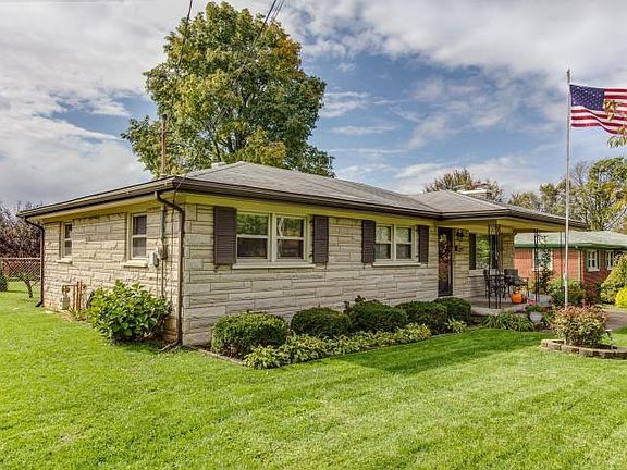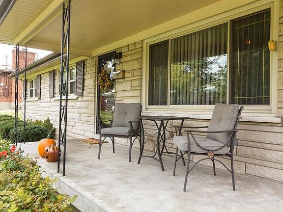 This beautiful bedford stone ranch home has so much to offer in both a convenient area and price point. Outdoor features include a covered front porch, large rear patio for entertaining, 2.5 car detached garage and a fully fenced rear yard. Inside the large living room boasts a bay window and fireplace. The eat-in kitchen has crisp white cabinets, neutral countertops and appliances that are included with the home. There is a large pantry just inside the hallway for extra storage. All three bedrooms are good size and have hardwood flooring. The primary bath boasts an additional half bath, while the spare bedrooms are nestled just outside the large full bath in the hallway. The full bath has tile flooring and surround and is much larger than you expect. The lower level of the home has a wet bar for entertaining and an additional area off the bar that has tile flooring and is perfect for a game table. The second fireplace is on this level in the lower level living room and offers the space of TWO living rooms combined. There is a large finished storage space to the end of the room and additional unfinished storage area to the rear of the home. So much to offer in the sought out neighborhood of Friendly Hills, where homes are well kept and true pride of homeownership is all around.