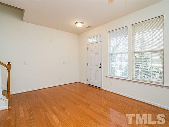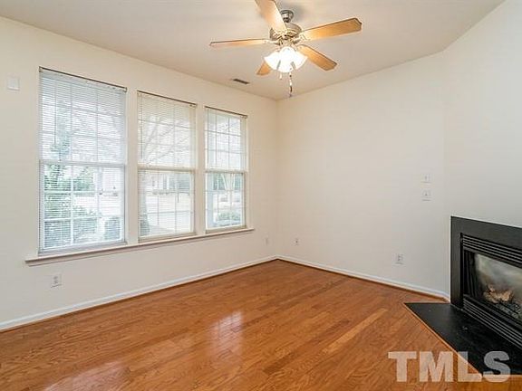 HOT SPOT! From here it's minutes to shopping, RDU, & Umstead. Commute to RTP in just under 20! Cute townhome with oversized single garage. Covered front porch with white picket fence off Cornerstone Park Drive. Handsome engineered hardwoods throughout main level. Open floorplan. Living room with corner gas fireplace. Dining with brushed nickel chandelier. Breakfast bar & kitchen with oak cabinetry. En suite baths in bedrooms. Vaulted ceiling in master. Huge laundry room + tons of storage. Brand new paint!