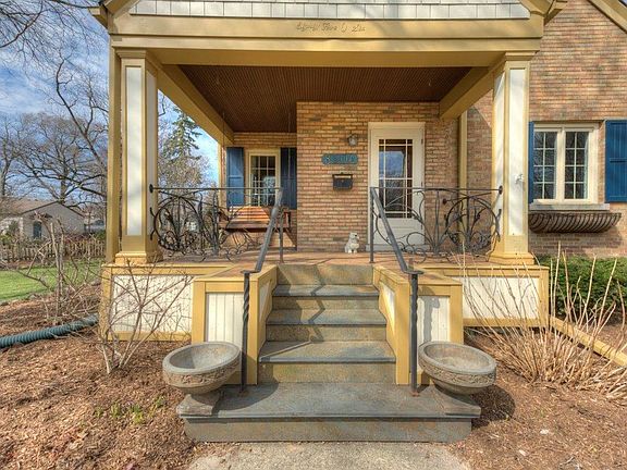 Nestled in the highly desirable Wicker Park Estates you will find this custom built brick 1.5 story home with so much character and it sits on 1 1/2 lots. Featuring Hardwood floors throughout. Living Room boasts hand crafted custom built woodwork with a gas fireplace. Off the living room is the dining room with beautiful wainscoting. Updated kitchen has an abundance of maple cabinets, Corian counters, & subway tile. Cooking on the Viking stove is open to the eating area. Completing this level is an office/bedroom & an updated full bathroom. Upper level has 3 bedrooms & another updated bathroom. Spacious master shows exposed brick with a wall of closets. Basement has been finished for you with an enormous family room and another Fireplace, eating area, possible 5th bedroom with a walk in closet and a 3rd Bathroom. 3 seasons room overlooking the nice fenced in back yard. Other features include: Zoned heating, Skylights, 2 car brick garage, Solid doors, Irrigation system