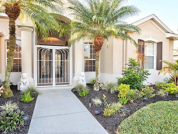Why wait for new construction? LOW HOA! Beautiful preserve lot with lake view, exceptionally maintained, Move in Ready home! Quiet neighborhood, NO CDD fee in a well groomed, desirable community. Rear view of conservation area offering tranquil non obstructed park like setting with water view on premium preserve lot with NO neighbors behind. Split plan with great room and formal living. Separate dining and office/den with french doors. Jacuzzi tub in master with huge walk-in closet. Large kitchen with island, breakfast nook and bar counter. Inside utility room with sink and cabinets includes new LG washer/dryer. TV'S in garage and master bath included. Low HOA fee of 500 per year! All rooms open to over sized screened lanai. Surround sound included! Lots of upgrades, granite, stainless steel appliances, custom California closet in master bedroom, diamond plate garage flooring, NEWER HIGH END AC. Inside Laundry with NEW LG washer and dryer included. Shows beautifully! Owners have kept home in pristine condition! selling agent bonus! Seller is motivated.
