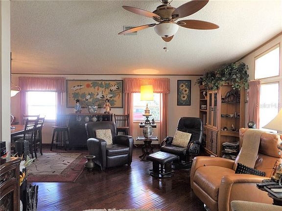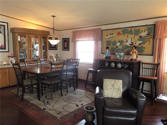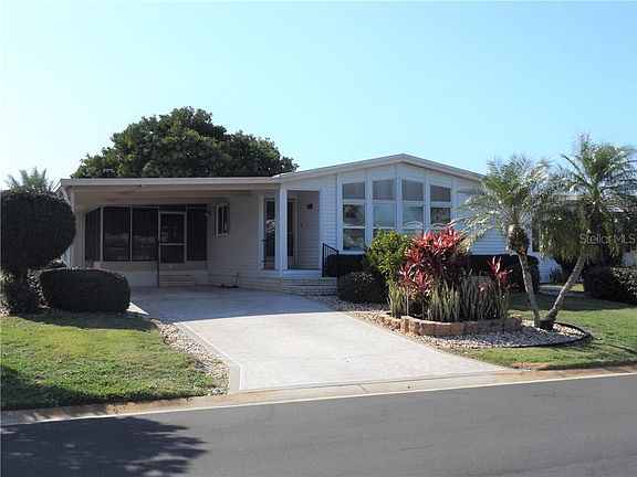 Own your home, and your lot, at popular Imperial Lakes Estates Manufactured Home Community. A premier 55+ gated community. The amenities are set up as a condominium association. This well maintained 2 bedrooms, 2 bathrooms, double-wide manufactured home is ready for a new owner and shows pride of ownership. This is a great floorplan with a spacious living-dining room with a built-in china cabinet. An updated kitchen with painted cabinets, newer S.S. appliances including a new range exhaust hood & garbage disposal, a large farmhouse sink, kitchen pantry, desk, and extra storage. A spacious dining room with built-in cabinet. Beautiful hand scraped laminate floors. A large master bedroom with carpet and laminate flooring from the hallway to the master bathroom, and a master bathroom with a new glass shower door. This home also includes an enclosed 12x15 sun porch, large carport, golf cart garage, workshop, and a storage-laundry room, a rear patio, and a spacious back yard with a large shade tree. A One-year American Home Shield Home Warranty will be provided for the buyer. Imperial Lakes Estates is situated on a 65-acre lake, clubhouse with stage, dance floor, kitchen, billiards room, library, bar-b-que grill, two swimming pools, spa, tennis courts, pickle-ball, horseshoes, shuffleboard, central mail center, on-site manager, low condo fees for the amenities and so much more. Easy access to I-75 and the new Publix shopping center, I-275 to St Petersburg (25 minutes away,) and shopping. Fifty minutes to Tampa International Airport. A great location & community. Come enjoy the Florida retirement lifestyle at Imperial Lakes Estates.