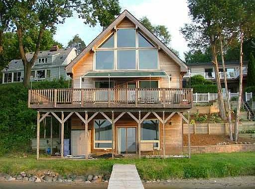 Enjoy relaxed lake living with gorgeous views of all-sports Silver Lake and 45-feet of frontage on a sandy-bottom beach. Cedar, cathedral ceilings, huge wall of windows with spectacular lake views, spiral staircase. Large & open kitchen with cooktop island and bar-style seating. Loft space perfect for 3rd bedroom or study has adjacent bath. 2nd bathroom has jacuzzi tub. Large decks great for entertaining & watching the sunsets. Dock included. Wonderful lake living with minimal outside m