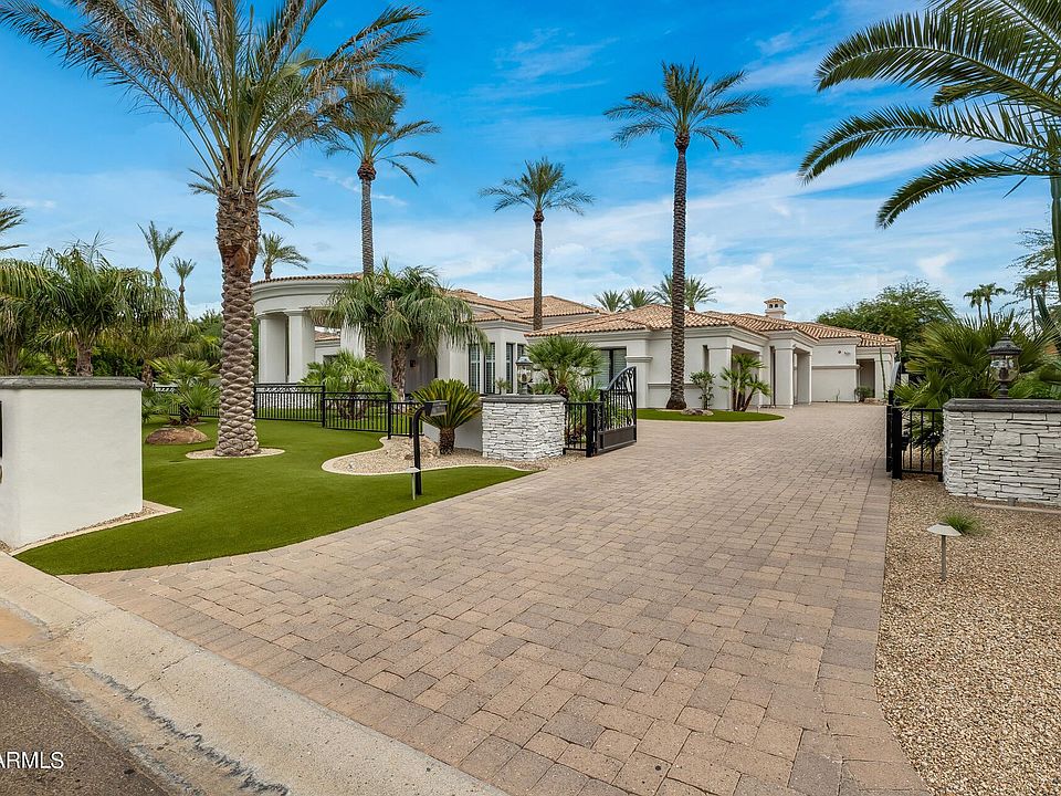 This gorgeous SoHome remodeled privately gated estate has it all! 5 Bedrooms plus den, 7 bathrooms, entertainment wet bar, 14' tall pocket door wall of glass, wine cellar 4 car garage with huge storage room and an amazing backyard! The circular drive takes you to a stunning entrance with large Portico. Every detail has been carefully thought out, and the home is welcoming and warm even though it's over 7,200 Sq. Ft. Hand carved details, wood plank floors, wood shutters, smooth coat interior walls and multiple fireplaces are just a few of the details of this home. The primary bedroom and bathroom boasts a fireplace, unbelievable closet, sitting room with a butler wet bar. All bedrooms are ensuites and there are 2 guest half bathrooms. Owner/Agent will consider trades.