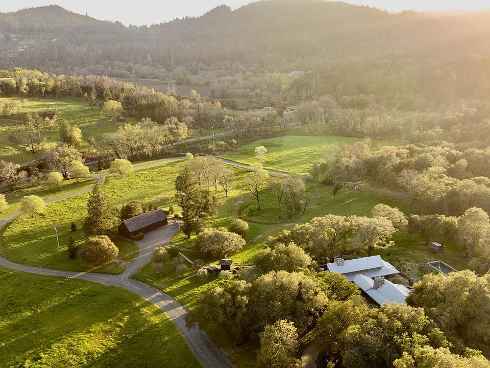 One-of-a-kind California ranch-style property on 20+ acres in the rolling western hills of Calistoga. Published in House Beautiful and characterized by natural, rugged, durable building materials of earthy tones, this property exudes a sense of calm, relaxation, and peace of mind. The property was designed with expansion in mind. The size and location of the current structures allow for the addition of a main residence. The property currently includes a Robert Gregory Architects custom designed native stone and cedar plank guest residence with two private suites carefully positioned among glorious Heritage oaks. The suites are connected by an airy breezeway that functions as an open-air dining room with stone-wrapped BBQ area and adjacent to a calming fountain wall. Lower on the property sits a truly modern Rela Gleason designed black metal designer barn also with two guest suites and garage space for 2+ vehicles and/or maintenance equipment. This dispersed property is a perfect retreat for two, a family compound, or a camp for entertaining overnight/weekend guests. Minutes to Calistoga and slightly over an hour to the Golden Gate Bridge. Duplicate listing to MLS#: 323910780