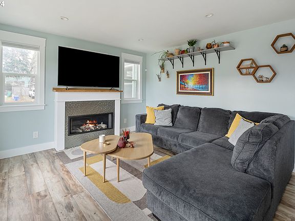 Fully updated St Johns jewel with high-end touches throughout. This one level home features an open concept main floor with a gas fireplace and designer tile surround, integrated lighting, and a custom kitchen with quartzite countertops and GE Cafe smart appliances. Relax in the stunning primary suite: the oversized bathroom with walk-in shower and dual sinks is a rare spa-like retreat. The thoughtful, studs-out remodel includes energy efficient features like a minisplit, tankless hot water heater, newer windows, extra insulation, and updated electrical and plumbing. Every detail is accounted for here, including abundant storage options inside the home plus a spacious detached outbuilding that is perfect for all your gear. Or: explore finishing it into your dream home office or craft room! Ideally located on an oversized corner lot with firepit, apple tree, newly installed fence around the entire property, and one of the last remaining historic white oaks in the neighborhood. Live just a block off of lush Pier Park and close to all of the action of vibrant St Johns while being tucked into your own quiet sanctuary. Rare energy score of 10! [Home Energy Score = 10. HES Report at https://rpt.greenbuildingregistry.com/hes/OR10201522]