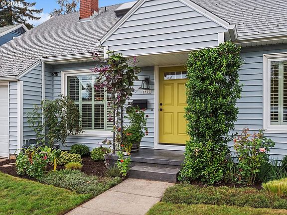 Montavilla at its finest. This 4 bedroom 2 bathroom cape cod combines style, affordability and functionality all in one.Updated kitchen with quartz countertops and subway backsplash looks out over a gardener's dream.Warm up to a wood-burning fire during cold winter months.Large bedrooms with ample closet space. Primary ensuite with walk-in shower and skylight.Beautiful hardwood floors on the main floor and hardwoods under the carpet upstairs.Expansive deck in backyard with bench seating leads you to backyard perfect for entertaining, playing with the family or just enjoying the beauty of the masterfully crafted garden exploding with color and vibrance. EV car charger installed in Garage.Within 1 block to Montivilla Park and Jessup University (Multnomah University Campus). This is the best value the NE has to offer. [Home Energy Score = 2. HES Report at https://rpt.greenbuildingregistry.com/hes/OR10233127]