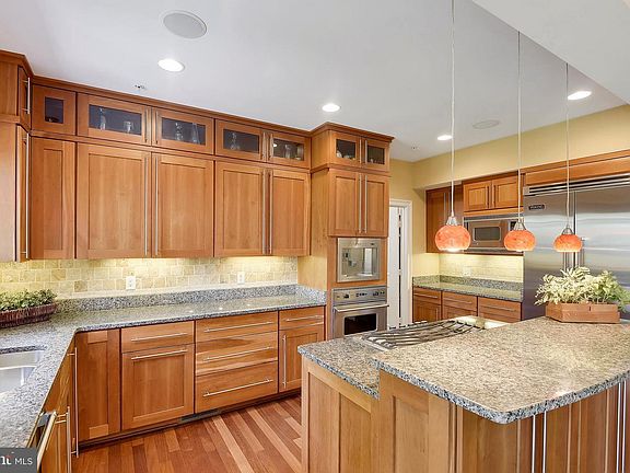 Fabulous new price!!!Impeccably maintained just like new! Rare opportunity for Rembrandt Builders home! Stylish, sophisticated w/flowing layout. All brick and stone. 4 fin. lvls w/elegant details thru-out. Brazilian HWF. Gourmet KT w/Viking appls, including a built-in Dacor espresso maker!, open to family rm and rear garden with a patio. Exclusive master suite w/dual expansive WICs. Spa-like MBA. Tranquil sunset facing front porch, gas FP in FR. 9'ceilings. Grand 2 story foyer.Generator! Enter the grand two story foyer to the elegant, open first floor with living room, dining room with tray ceiling, open kitchen family room with a gas fireplace, large pantry and laundry room. Brazilian cherry hardwoods throughout. Convenient access to the 2 car garage to the kitchen and charming patio just off the eating area of the kitchen. Upstairs the spacious master suite has 2, large walk-in closets, sitting area and a sumptuous master bath. 3 more bedrooms on this level, one with a private full bath, the other two share a jack and jill bath. All bedrooms have Brazilian cherry hardwood floors. The third floor has wall-to-wall carpet and 2 more bright bedrooms and a full hall bath. The lower level is wall-to-wall carpeted with a large open recreation area as well as a two other rooms that could be used as a music room/exercise room. There is a full bath as well. The backyard is fully fenced for pets and play. The house is on a quiet street but near downtown Bethesda and commuting routes. Please give day before notice to show.