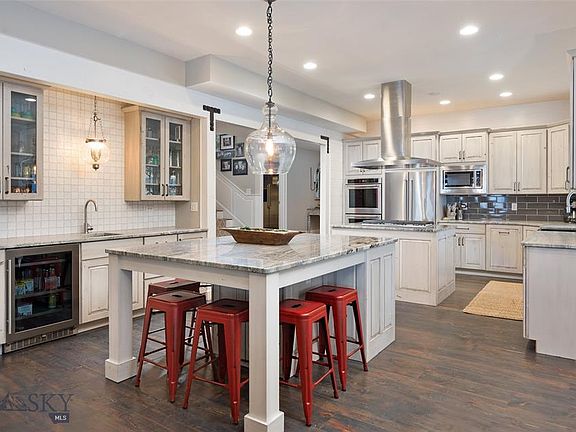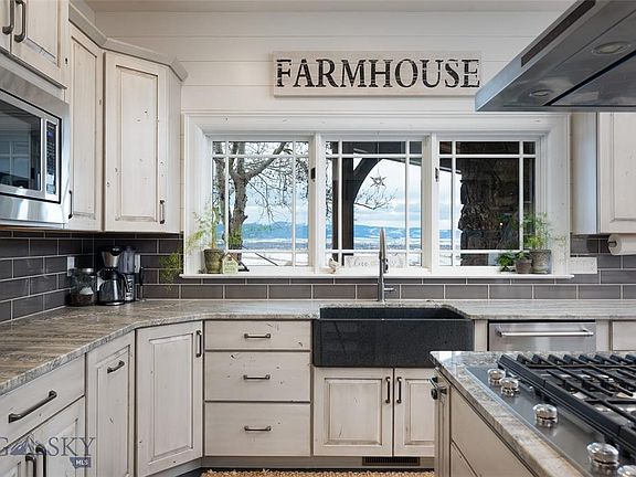 The pinnacle of views in Bozeman! Completely remodeled 5-bedroom modern farmhouse situated on 5 plus acres offering 360 degree mountain views and end of the road privacy. Located in the desirable Springhill area at the base of the Bridger mountains and only 5 miles to downtown. The kitchen is perfect for entertaining as it boasts a unique 2-island and wet bar design that maximizes both space and function. Open floor concept throughout the kitchen and living room areas complete with sanded and stained barnwood flooring. Large pantry to accommodate all the necessities. Additional family room located on the main level with adjoining home gym. Expansive master bedroom with a large walk-in closet on second level capturing the stunning panoramic views of the Gallatin Valley. Fully remodeled guest house with covered deck abuts the fenced-in pasture. A true Montana gem!