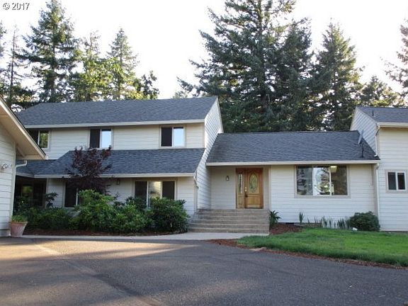 Welcome to this 3-5 bedroom 3 & 1/2 bath estate on 5 private, gently sloping acres in the 4J school district. Secluded and 15 minutes to downtown. Home features vaulted ceilings, custom stone work, cherry cabinets, stainless appliances. Master suite with private study. Family room plus game room. So many rooms! Huge 3-car garage. Large wraparound deck. An amazing opportunity to live the finest Northwest living plus views to die for.