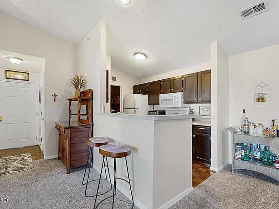 Welcome to 8508 Ambrosse Lane, #311 - a home where comfort and style come together effortlessly. As you step inside, you'll find a spacious living area that blends living and dining spaces perfectly—ideal for relaxing or entertaining. With natural light streaming in, plush carpeting underfoot, and a cozy fireplace, it's easy to picture yourself unwinding here after a busy day. The kitchen is a standout, offering a seamless mix of style and functionality. Dark cabinets complement the light countertops, and modern appliances are ready to handle everything from quick snacks to gourmet meals. A breakfast bar with seating adds a casual spot for meals or mingling. The primary bedroom feels like a private retreat with vaulted ceilings, large windows, and plenty of closet space. It's a room designed for relaxation, complete with a ceiling fan to keep you comfortable year-round. The ensuite features a full bath and an additional vanity, adding extra convenience to your daily routine. The second bathroom follows suit with clean lines, modern fixtures, and plenty of counter space, giving you a spa-like experience at home. Additional perks include a one-car garage with interior entry and a storage closet conveniently located on the same floor as the unit. Enjoy the added bonus of a clubhouse, pool, and tennis/pickleball courts, all just steps from your door. Situated off Hurstbourne Lane, this location keeps you close to the best of Jeffersontown and Fern Creek, with shopping, dining, and entertainment just minutes away. Whether you're a first-time homebuyer, downsizing, or just looking for a change, this home offers the perfect mix of comfort, style, and convenience. Ready to make it yours? Welcome home!