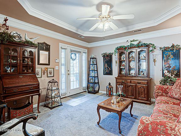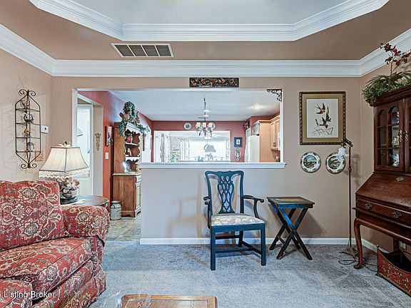 This beautiful, ranch style home is one of the largest in the community of St. James Place. The open floor plan is perfect for entertaining and family gatherings. You enter into the spacious living room from a lovely, private courtyard. The updated kitchen has a nice work island, with an abundance of counter space and cabinets. All appliances stay with the home. There is a sun room/family room at the back of the home with a corner fireplace that stays. This room overlooks a private outdoor space and has access to the fully enclosed patio. There is a large primary bedroom, full bath, 2nd bedroom and half bath separated from the main living space. There is a pull down staircase in the hallway to the attic for additional storage. The utility room is off the kitchen and the washer/dryer stays with the home. Across from the unit is a community room with exercise equipment ad can be rented if needed for events. There is easy access to the interstate, shopping and restaurants. This is a great home!