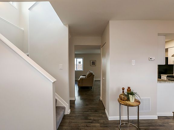 Large FOUR bedroom end unit home remodeled top to bottom! Beautiful cabinets & appliances in the bright kitchen. Dining & family room with a fireplace. Handsome flooring & fresh new carpet modernize the space. Two exquisite full bathrooms upstairs, 1/2 bath on the main level, and in the basement. New doors, slider, and walk-out basement. Huge deck for entertaining! Washer/dryer w/full price offer!