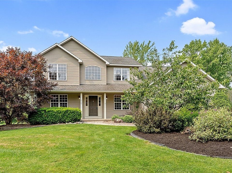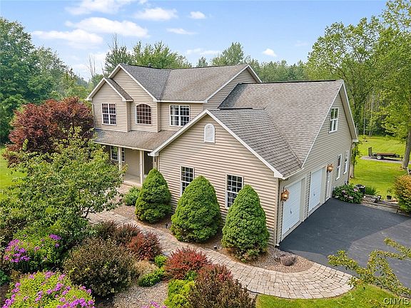 Do you want to feel like you are in the middle of the country yet be minutes to Route 31, shopping, schools, dining, RT 81 and Oneida Lake? Just minutes from the new Micron site? This unique property is set on nearly 5 acres with a park like 2 acres of lawn, above ground pool, and a 30X50 heated/insulated pole barn with water, 240V and 120V power. There is also a 12X20 shed with lofts, a pond stocked with catfish, bass and sunfish, and a variety of nut and fruit trees including apple, pear, peach, plumb and others. There is an invisible dog fence around the perimeter of the lawn and back side of pond. A front paver walkway leads to the open front porch, and inside the 2-story entrance foyer. There is an office to the right, a living room to the left with hardwoods and a half bath. There is a large, eat-in kitchen with granite counters, a first floor laundry/pantry, exit to screened porch and deck and a large family room with vaulted ceilings. Upstairs are 4 good sized bedrooms, including the primary bedroom suite with full bath and walk-in closet and an additional full bath. Partially finished walk-out basement w/wood stove adds approx. 900 sq ft of living space. What a great home!