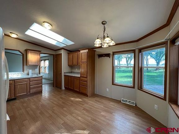 Sweet country charmer conveniently located between Montrose and Olathe, this sweet country charmer is a property you won’t want to miss! This well maintained three bedroom, two bath home is nestled beneath a row of mature shade trees, has breathtaking views that span from the San Juan’s to the edge of the Black Canyon, with an additional 4 irrigated acres behind the home, perfect for a hobby farm or 4-H animals. This home has a great floorplan perfect for country living. The most commonly used entrance to the home in on the west side of the home. It opens into the laundry/mud room where you can take off your jackets and hats, kick off your shoes and stash your bags as you make your way into the open kitchen area gleaming from the natural sunlight that filters in the large windows. This kitchen has a lot of cabinet and countertop space. Through the kitchen the home opens up to a large family room that separates the two bedrooms and full bathroom from the main bedroom that has two large closets and an unsuited bathroom. Making that space more private and quiet. The formal front door is in the family room and opens up to an elevated sun deck where you can relax after a wonderful and enjoy watching the sun as it sets over the horizon. You can also relax knowing this home is economical and easy to care for with an underground sprinkler system for the pristine, manicured front and back yard. You will also enjoy the low cost, energy efficient geo-thermal heating and cooling system as well as the natural light that filters through the several large sky lights. There is room here for all of your cars, toys and critters with the 2 car detached garage, small workshop, and a shed for a horse/ tack room along with the four fenced acres of irrigated pasture. Enjoy the freedom of country living at its finest. No HOA and NO Covenants! Don't take my word for it, schedule your own private showing and see for yourself!