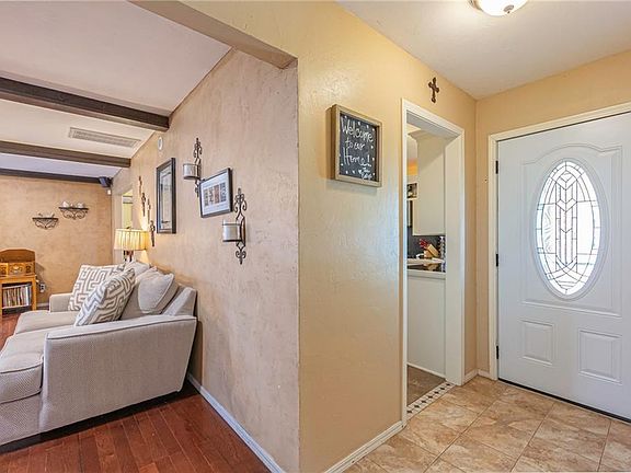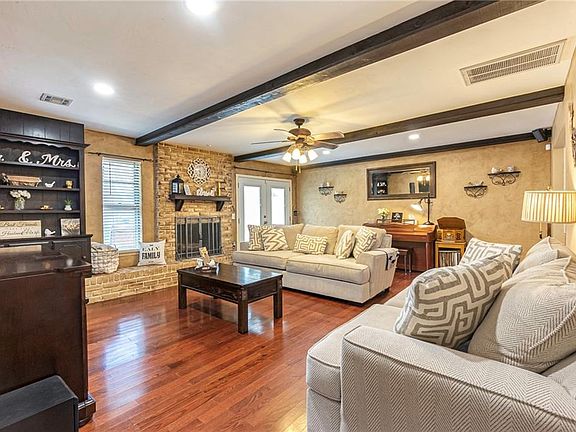 Beautifully updated home in Rambling Acres!! When you enter the home you will be welcomed into a cozy and bright living room with a large brick mantled fireplace with built-in bench, French doors, canned lighting, dark stained wood beams and matching built in bookshelf. Kitchen includes double ovens, new garbage disposal, breakfast bar, new stainless steel dishwasher and microwave, spacious pantry, pull out drawer in cabinet under stove for extra storage and ease, and dining area. Master suite has a bench window seat, 2 master closets, and gorgeously updated walk-in shower with cutout shelving. Other features and updates of the home includes beautiful new countertops on hall bathroom, laundry room, new paint throughout, new wood floors, brand new roof and siding. The backyard welcomes you to an outdoor oasis with an open patio and 10x10 shed. Schedule your showing today!!