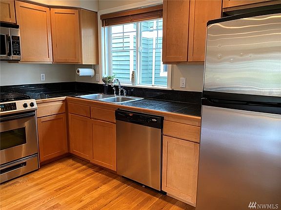 Located just a half mile from Green Lake, this convenient townhome has open living space with chef's kitchen. Granite countertops surround the stainless steel appliances offering gas stove top cooking. Maple cabinets and hardwood floors complete the high quality finishes. Efficient hot water and radiant heat including gas fireplace. Cat-5 wiring Security system can be activated. Deck & fenced in patio for outdoor living. Nearby transit made easy with metro stop just one block away.
