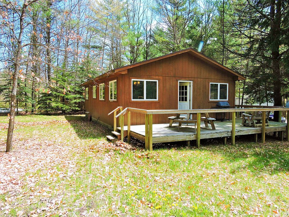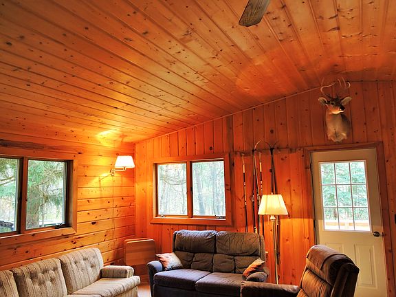 STATE LAND BORDERS PROPERTY ON THREE SIDES. This quintessential cabin in the woods is the perfect spot to escape the cares of city life. Secluded, yet close to main roads, this property is ideal for sportsmen - trail head at beginning of road, Higgins Lake, Muskegon River, Au Sable River in close proximity and endless acres of wooded land on which to recreate. The cabin interior is warm and inviting with rich knotty pine panels (painstakingly chosen from various parts of Northern Michigan and meticulously applied) covering all walls and ceilings. Every inch of this home is quality and beautifully designed to bring peace and serenity to the space. New well installed in 2006 and roof replaced in 2011. Has underground sprinkler system.