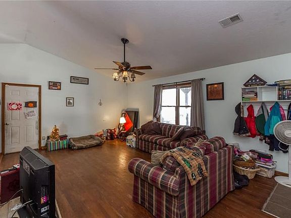 Opportunity is knocking in the Prince's Lake neighborhood. Great Room with vaulted ceilings and hardwood floors opens to the kitchen. Kitchen features tile floors, granite counters, ss appliances, and tile splashback. Space in kitchen for table and chairs. Master Bedroom with ample closet space, vaulted ceilings and private full bathroom. Second and third bedroom split by hall full bathroom. Wood deck on rear of home, mini barn for bonus storage, and fully fenced backyard. Earn a bit of equity with some elbow grease.