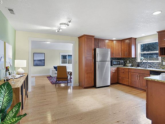 Fabulous remodeled ranch right across the street from Harney Park! The spacious living room with wood floors & a toasty gas fireplace welcomes you into the home before flowing into the updated kitchen with stainless appliances. The dining/bonus space completes the open main floor, featuring sliding doors ushering you onto the quiet backyard patio. The sleeping wing features 3 BD & 2 BA, including an ensuite primary bedroom. Two car garage, central AC, & a fenced backyard! OPEN SAT & SUN 12-2PM. [Home Energy Score = 3. HES Report at https://rpt.greenbuildingregistry.com/hes/OR10207242]