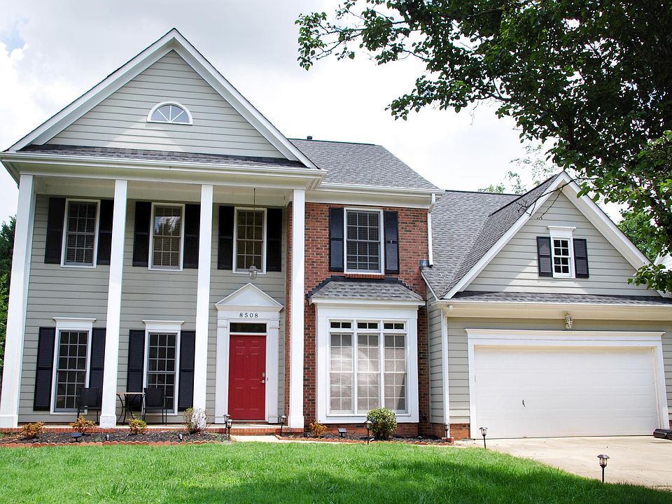 Beautiful, open, spacious 5 bed, 2.5 bath fully renovated close to 2400 sqft. Split bedroom floorplan with Master on ground level - large master bath with huge walk-in closet. Newer paint, carpet, tile, landscaping!! Cabinets freshly painted! 2 car garage. Washer/dryer included and new Stainless Steel appliances! Screened in back porch is right off kitchen - enjoy your morning coffee outside! Wood burning fireplace! Fenced yard with lots of plants/trees/flowers. Great location in Ballantyne with good schools. pets conditional